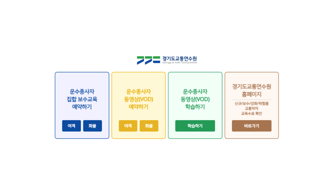 - 지역별 온라인 교육 사이트 접속 (교통문화연수원, 화물복지재단 교육센터 등)