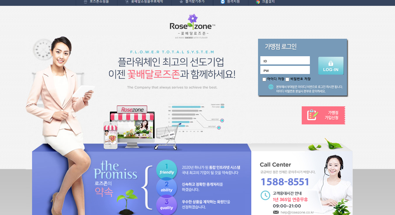 b2b.rosezone.co.kr입력 - 가맹점 전용 아이디와 비밀번호 입력 후 로그인