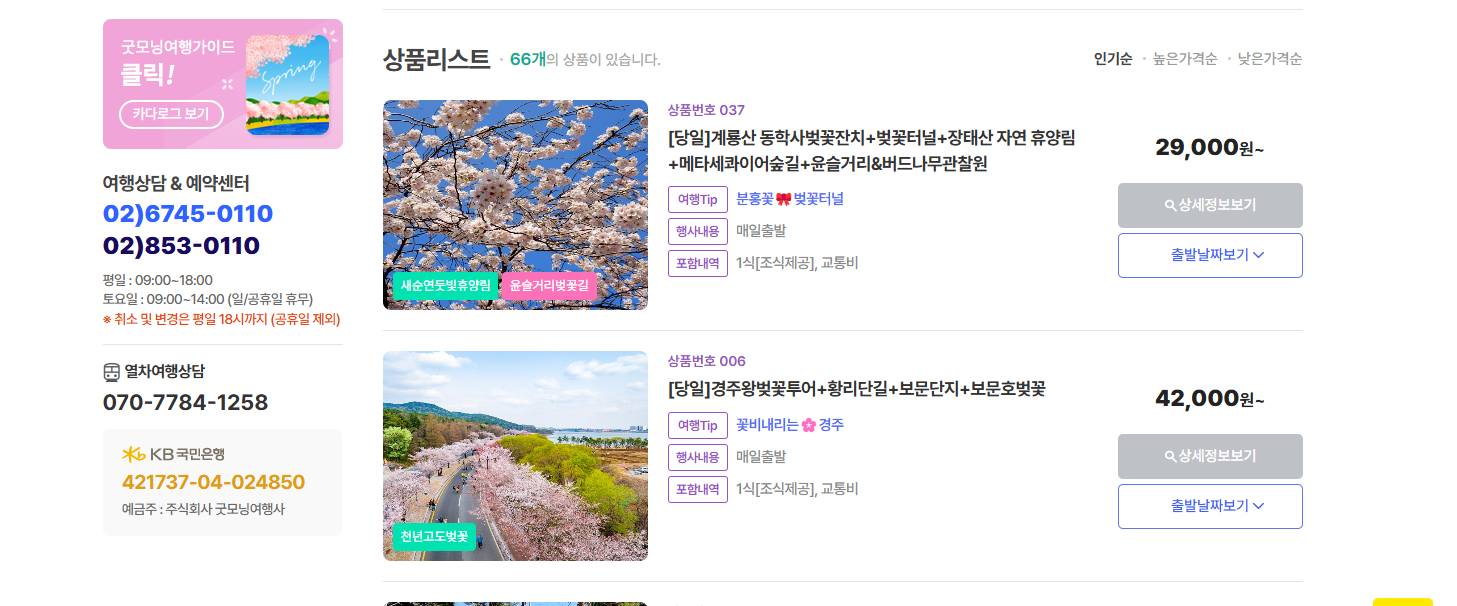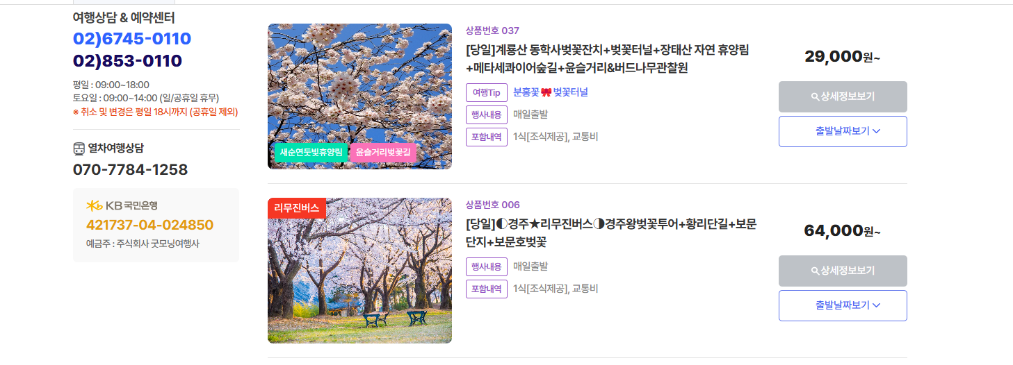 굿모닝여행사는 사계절을 아우르는 다채로운 여행 상품을 보유하고 있으며, 최근에도 봄철 꽃축제나 지역 특산물 체험 등 계절감 있는 테마 여행이 인기를 끌고 있습니다.