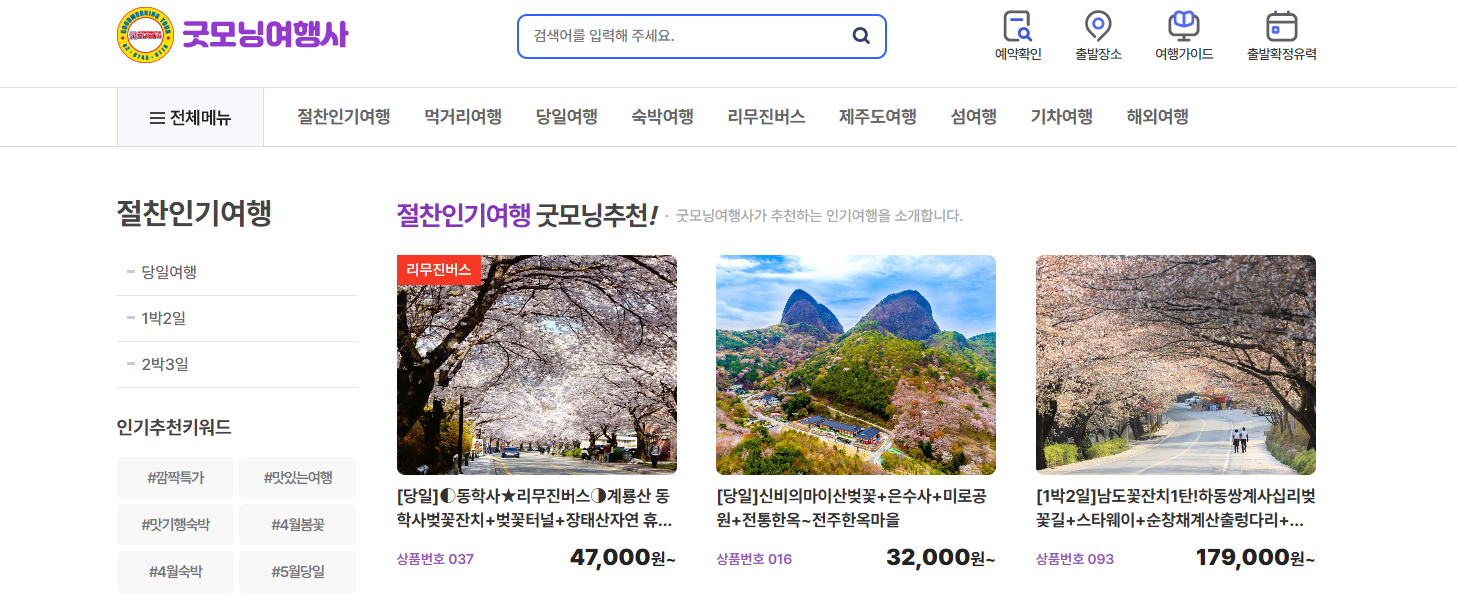 굿모닝여행사의 인기 프로그램