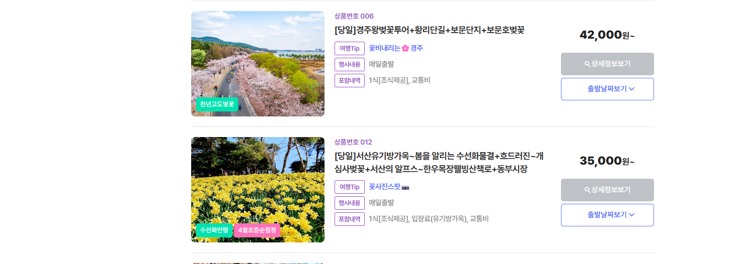 - 주요 일정 구성: 숙박 + 3끼 식사 + 관광지 입장 + 가이드 동행