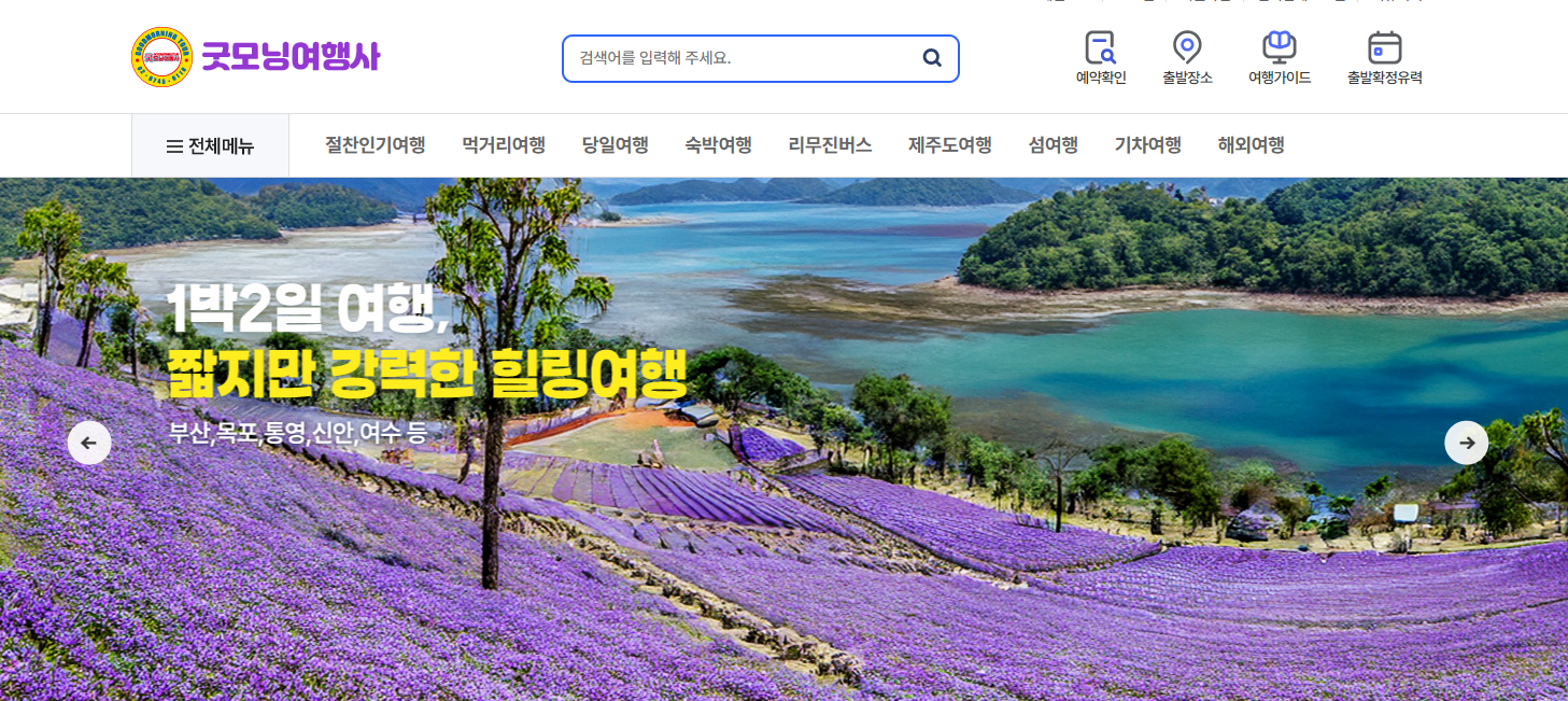 굿모닝여행사는 20년간의 노하우를 가진 국내 대표 단체 전문 여행사로, 가족 여행은 물론 부녀회, 교회, 직장, 동호회 등 다양한 단체의 여행을 기획하고 실행해온 풍부한 경험을 자랑합니다. 특히 맞춤형 단체 여행과 계절별 테마 여행에서 강점을 보이며, 고객의 니즈에 정확하게 부합하는 일정 구성을 통해 높은 만족도를 얻고 있습니다.