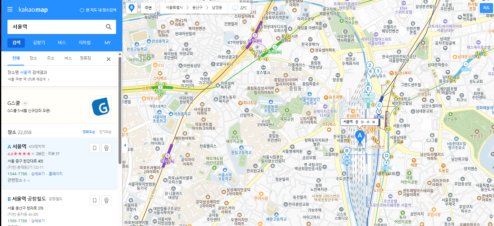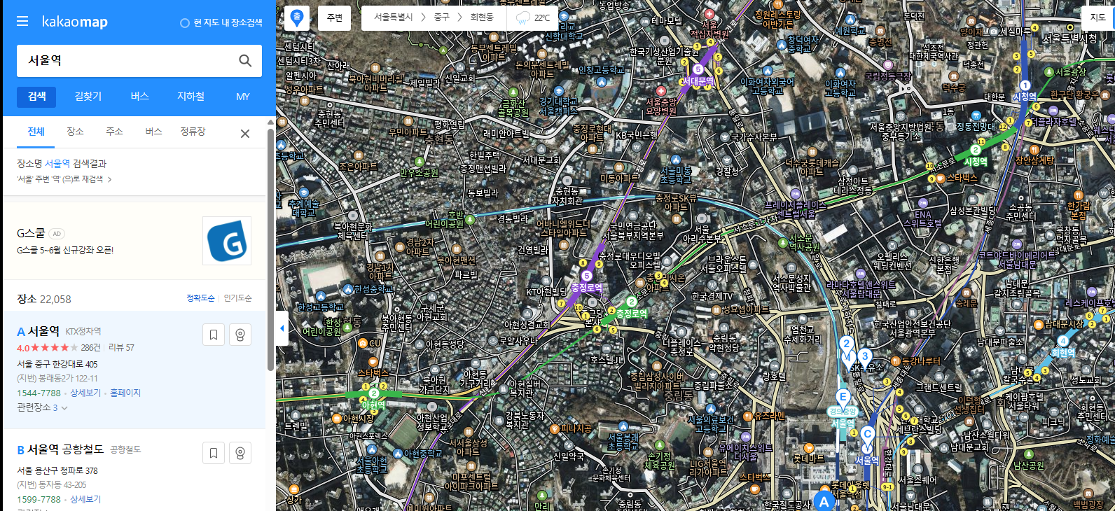 여러 명이 모이는 장소의 중간지점을 찾고, 각자 어떻게 이동할지를 계획할 때 다음 지도는 필수입니다.
