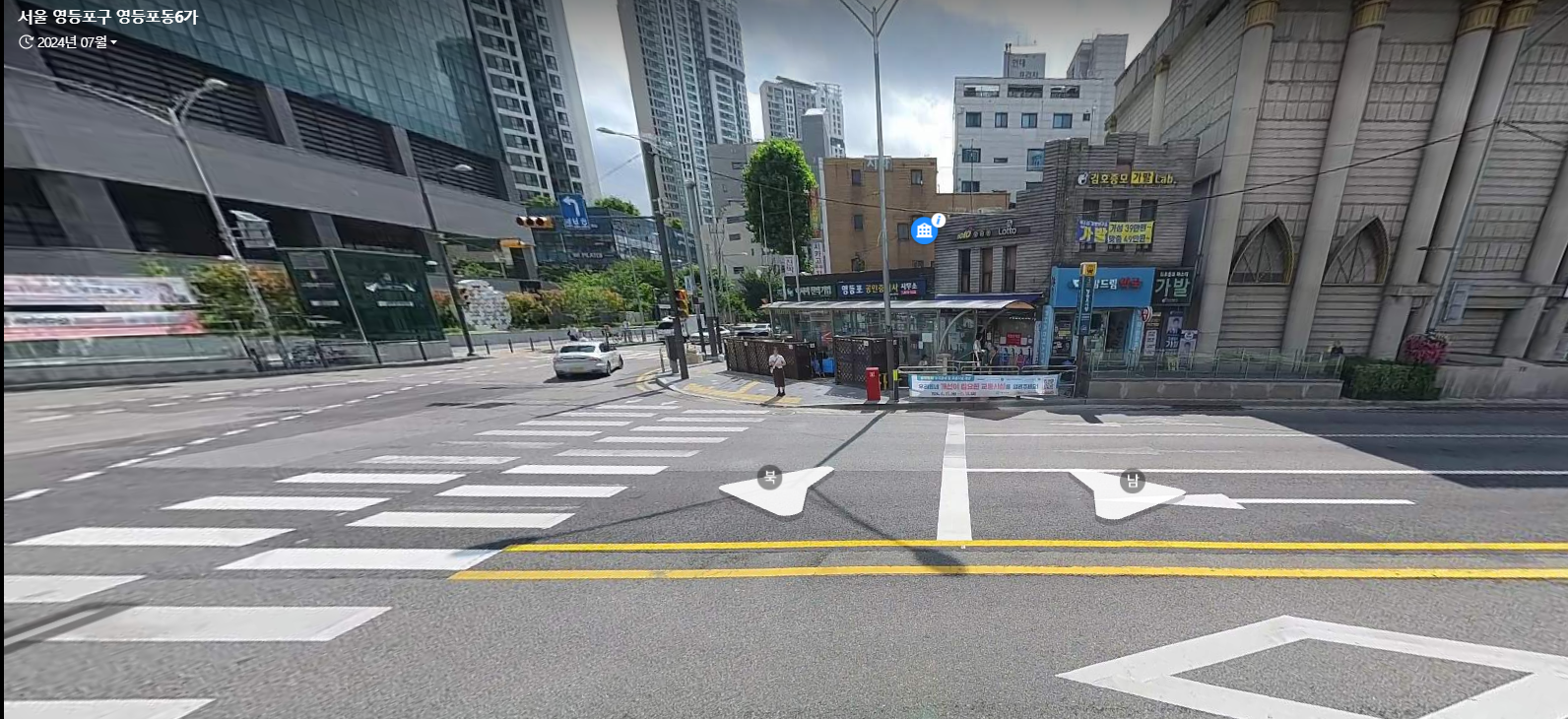 지도에서 원하는 장소를 클릭하면 로드뷰 아이콘이 나타나며, 클릭 시 해당 지역의 실제 거리 사진을 볼 수 있습니다.