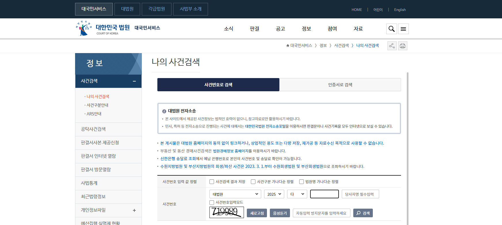 사건번호로 나의 사건검색하기