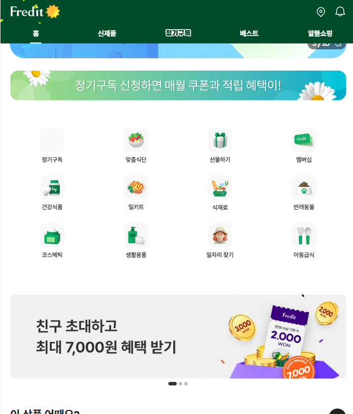 - 프레딧 푸드: 유제품, 건강기능식품, 신선식품 등