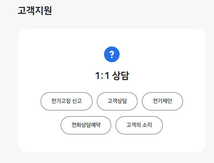 - 서비스 상담: 신청 상태, 요금 관련 문의, 계약 변경 등 1:1 문의 접수 가능