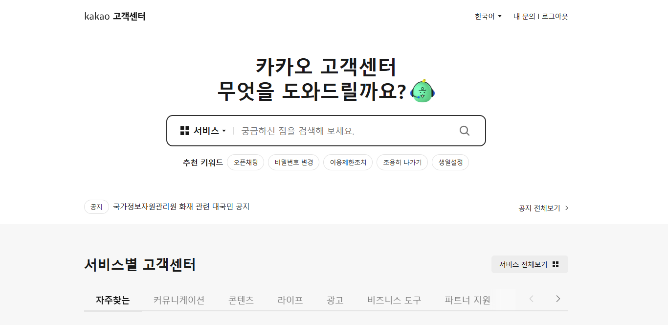 - 1번: 카카오톡, 계정, 이모티콘 등 카카오 서비스 문의